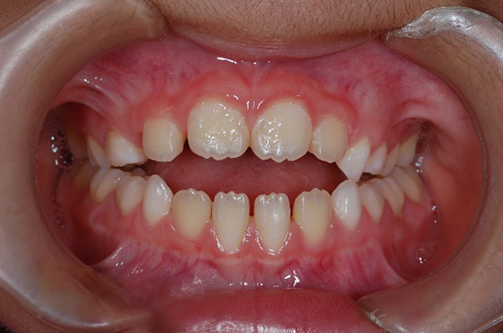 1. 骨格の発育旺盛な時期なので、固定式拡大装置(以下、「小児期の矯正治療に使用する装置」を参照)により上あご、下あごを積極的に拡大することが可能です。
